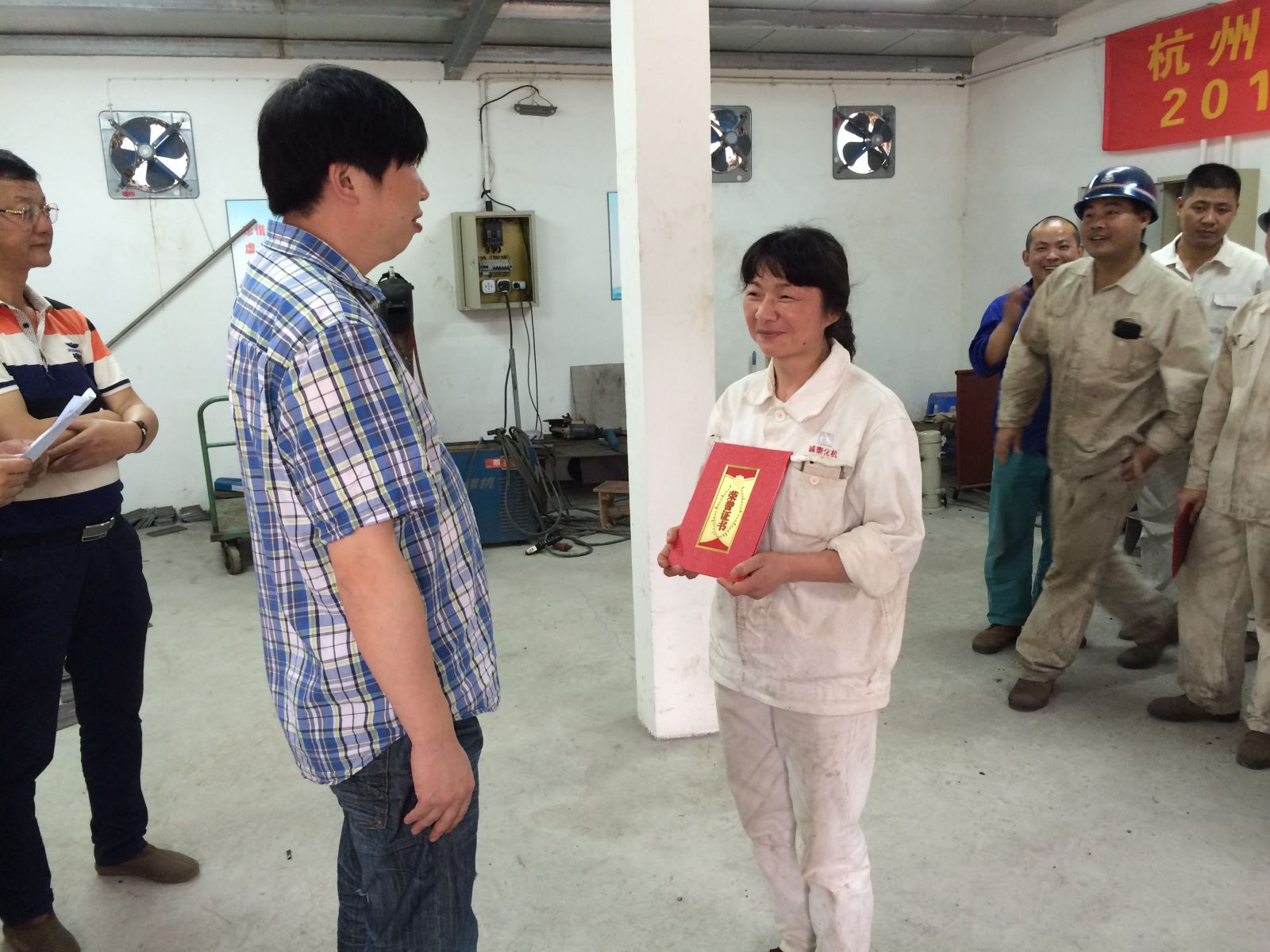 為了激發(fā)全體員工學(xué)習(xí)知識(shí)、技術(shù)的積極主動(dòng)性,形成奮發(fā)向上、爭(zhēng)創(chuàng)一流的氛圍,我公司與杭州信息科技有限公司于2015年9月28日聯(lián)合舉辦了一次電焊技能交流大賽。公司技術(shù)人員積極參與了比賽,并使出自己的真本事取得了優(yōu)異的成績(jī),展現(xiàn)了誠(chéng)泰人的風(fēng)采。公司董事長(zhǎng)親臨現(xiàn)場(chǎng)為獲獎(jiǎng)?wù)哳C發(fā)獲獎(jiǎng)證書(shū),并鼓勵(lì)各技術(shù)人員再接再厲,勇創(chuàng)佳績(jī)。