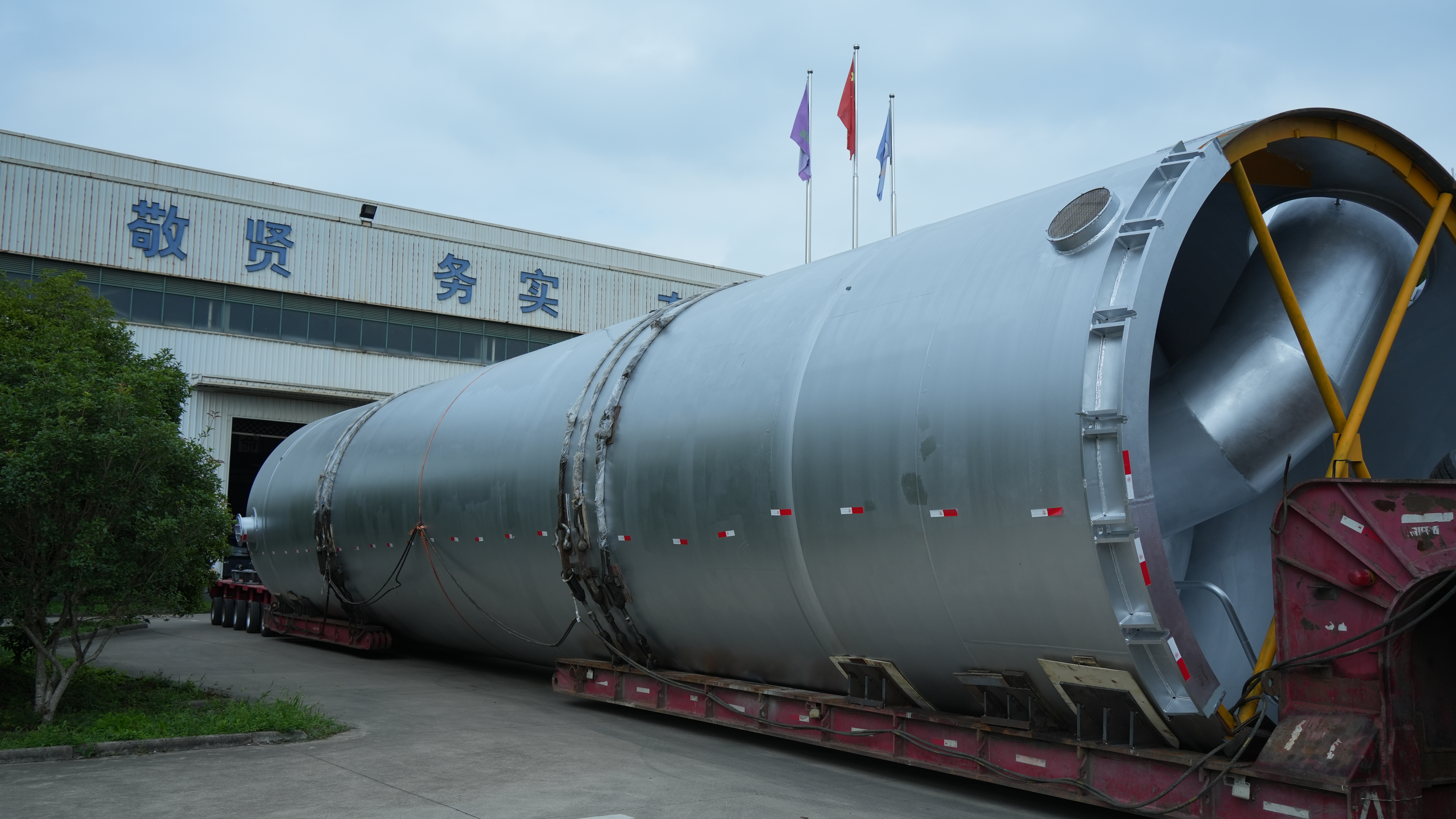 我公司制造的兩臺中科中綠空氣儲能項目的關鍵設備分子篩吸附器,尺寸:5000×25000,重大150噸/臺,順利交付業主。